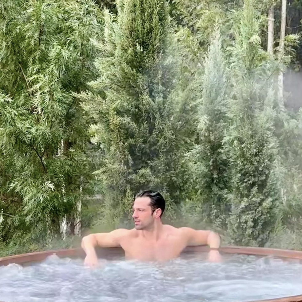 Συγκεκριμένα, ο τραγουδιστής το απόγευμα του Σαββάτου 16/3 μοιράστηκε με τους διαδικτυακούς τους φίλους μια σειρά από φωτογραφίες του, στις οποίες τον βλέπουμε να ποζάρει με το μαγιό του σε ένα υπαίθριο τζακούζι, με θέα το δάσος.